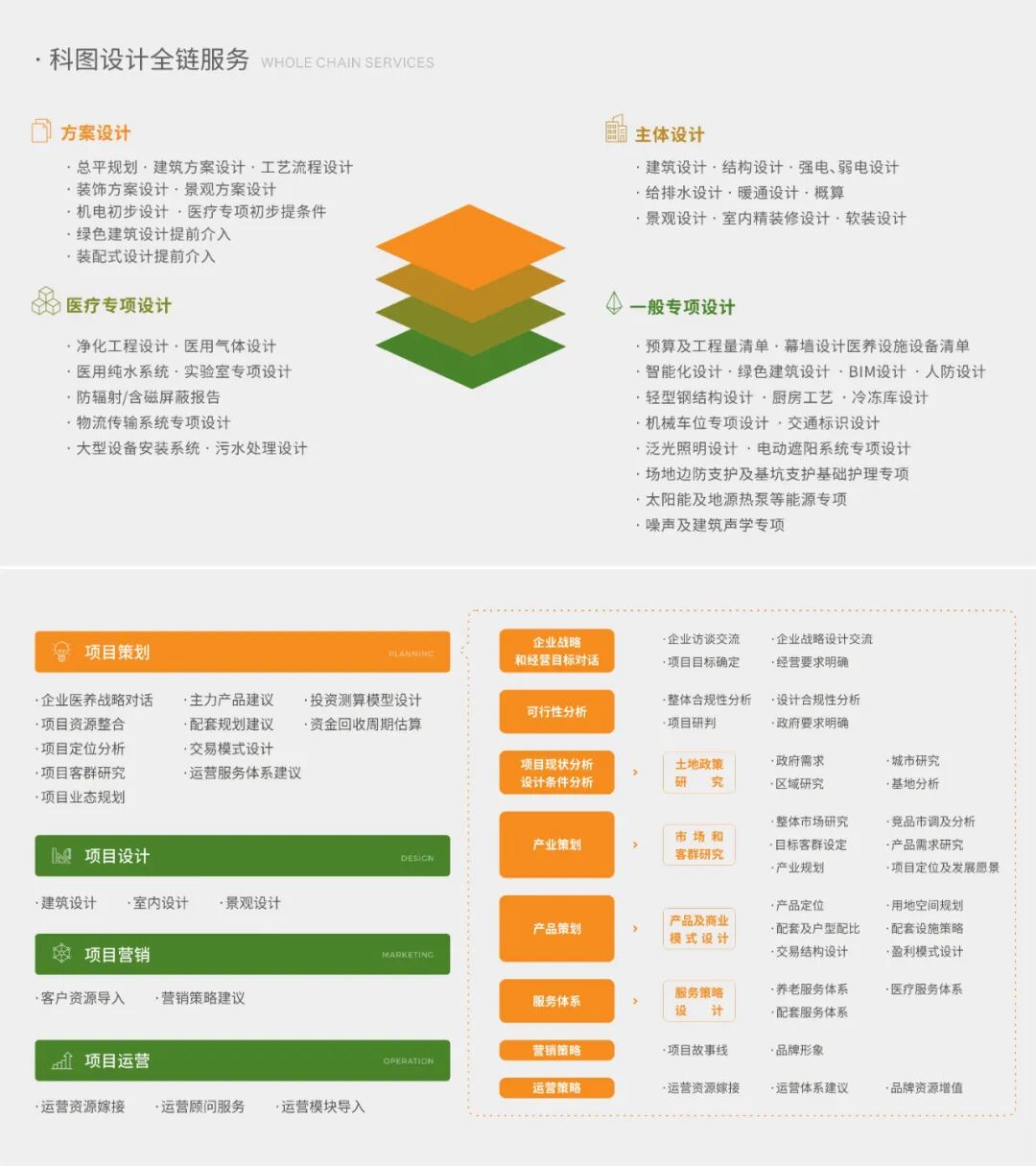 科圖深耕醫(yī)康養(yǎng)產業(yè)二十余年,在發(fā)展中構筑了一體化設計模式,擁有150+設計團隊及上百個落地實例。我們所走過的路也曾荊棘叢生,前行中我們不斷摸索、改進與創(chuàng)新,累積了300+的產業(yè)實踐經驗,科圖愿將自己所有的經驗與行業(yè)分享。