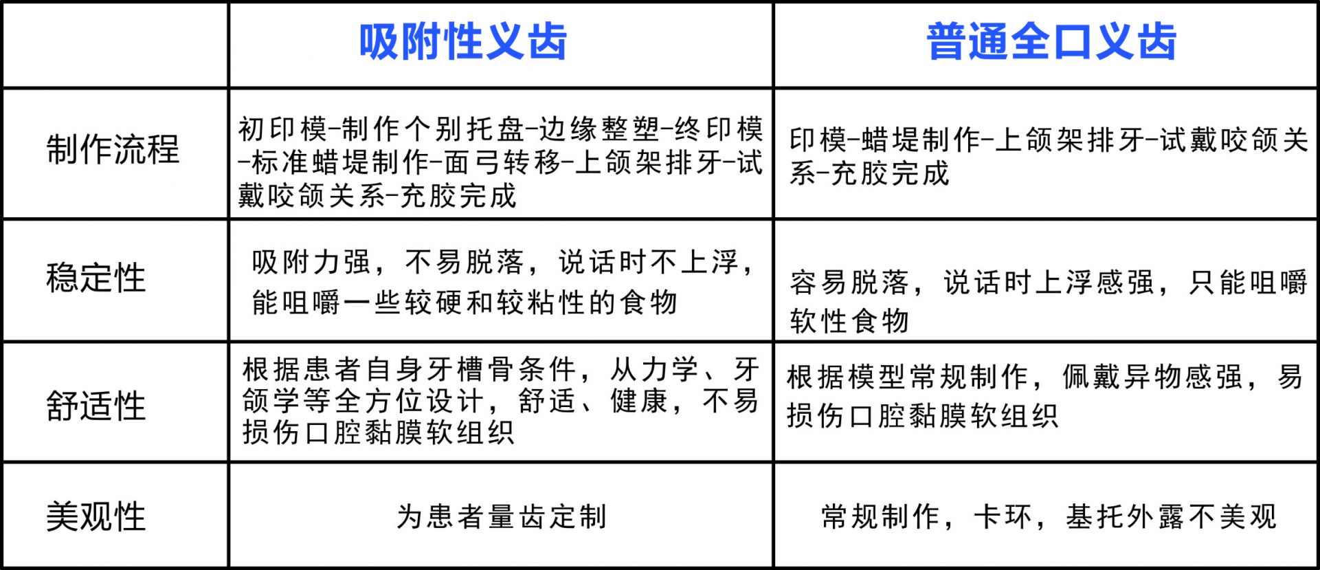 穩(wěn)定牢固,對于無牙頜患者,吸附性義齒吸附力強,較普通活動義齒穩(wěn)定牢固、不易脫落; 適用于所有無牙頜患者人群,特別是對義齒要求比較高的人群?;蜃陨項l件較差的渾濁,吸附 性義齒是老年無牙頜患者的福音。