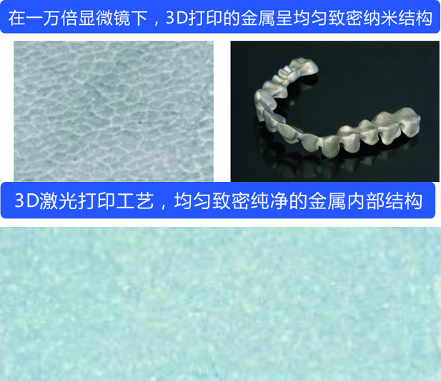 3D激光打印無鈹烤瓷牙 內(nèi)冠采用不含鈹?shù)腟tellite N9齒科鎳基鑄造合金與德國VITA95(3D)瓷粉相結(jié)合焙燒而成,避免了普通金屬含鈹元素對(duì)牙齦組織的過敏,紅腫和發(fā)黑的現(xiàn)象。 優(yōu)點(diǎn):經(jīng)濟(jì)實(shí)惠美觀耐用;避免崩瓷避免牙齦發(fā)炎;紅腫生物相溶性較好; 3D激光打印鈷格合金烤瓷牙 鈷鉻合金烤瓷牙是典型的一種非貴金屬烤瓷牙,它具有較強(qiáng)的金屬穩(wěn)定性,耐腐蝕性較強(qiáng);有著美觀、自然、牢固、耐磨等優(yōu)點(diǎn)。 優(yōu)點(diǎn):形態(tài)美觀,顏色逼真極高的; 硬度和耐磨性價(jià)格適中; 適合大眾人群