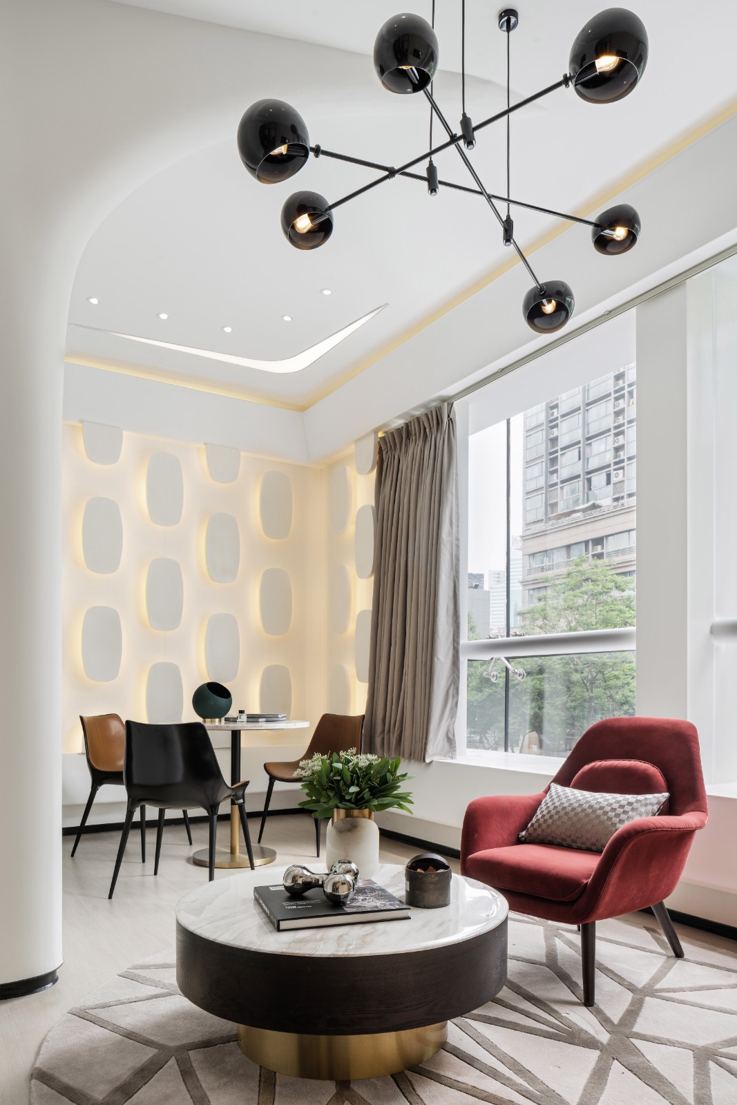 科圖設(shè)計(jì)作為項(xiàng)目醫(yī)療工藝流程優(yōu)化和調(diào)整、室內(nèi)方案及軟裝設(shè)計(jì),設(shè)計(jì)團(tuán)隊(duì)摒棄了傳統(tǒng)的醫(yī)療空間呈現(xiàn)方式,整體選擇具備延伸感的弧線、具備親和力的低飽和度色塊弱化醫(yī)療空間帶來的距離感。