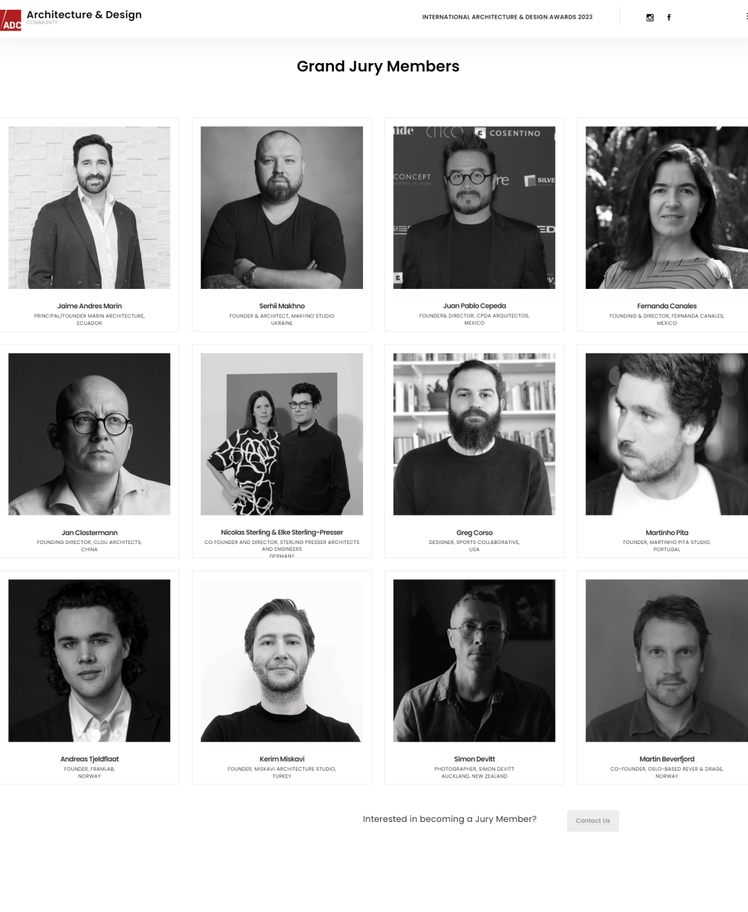 ADC 評(píng)審團(tuán)由來自多個(gè)學(xué)科(建筑、室內(nèi)、景觀、產(chǎn)品和傳達(dá)設(shè)計(jì))中每個(gè)學(xué)科的行業(yè)專家組成。他們?cè)诟髯缘脑O(shè)計(jì)領(lǐng)域有著極佳的才能和貢獻(xiàn),所有陪審員都至少有 15 年的經(jīng)驗(yàn),并且在其組織內(nèi)擔(dān)任領(lǐng)導(dǎo)或創(chuàng)始人職位。