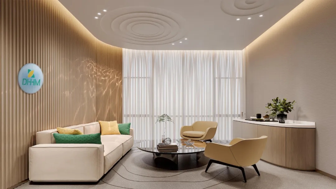 賦予了體檢中心獨(dú)特的生命力和溫馨感受。植物與家具的有機(jī)結(jié)合,使得空間流動(dòng)起來,