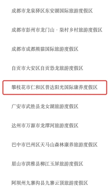 “四川省重點(diǎn)旅游項(xiàng)目”、“攀枝花陽(yáng)光康養(yǎng)產(chǎn)業(yè)普達(dá)示范基地”、“全國(guó)優(yōu)選旅游項(xiàng)目名錄”、