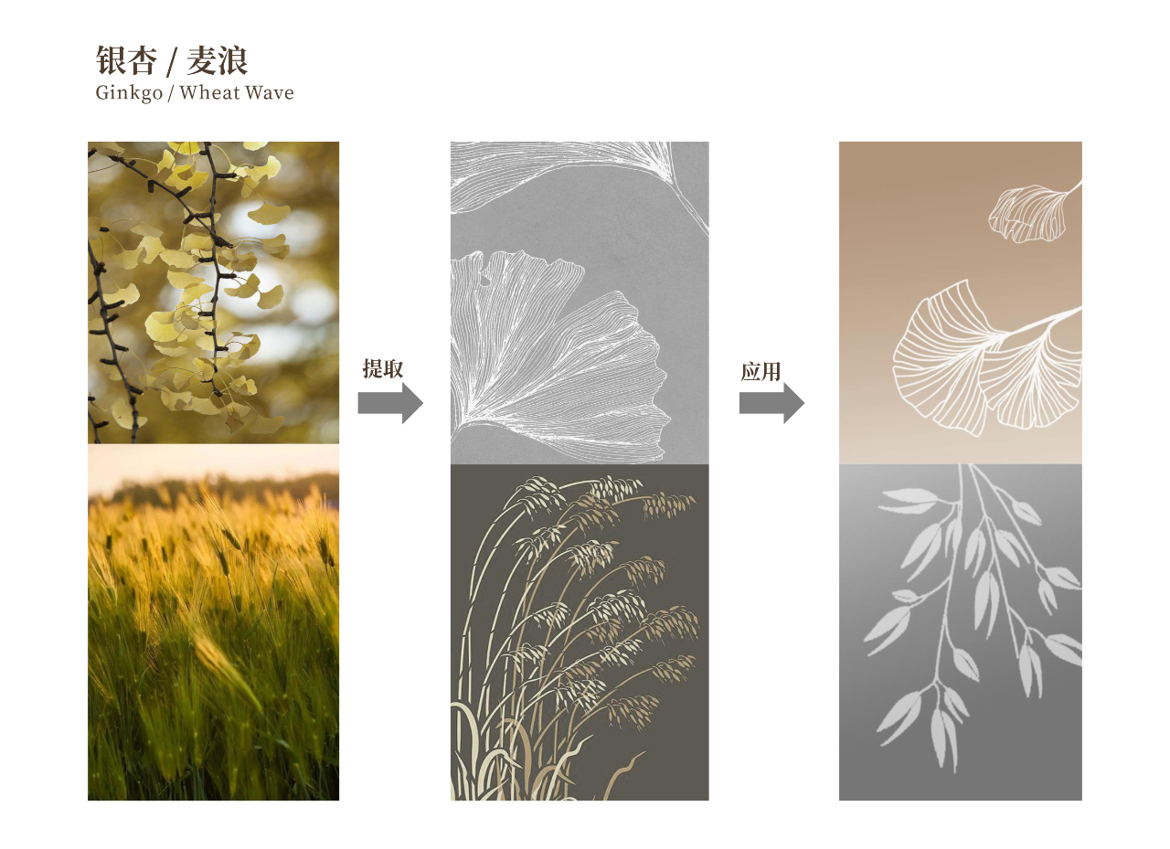 室內(nèi)設(shè)計正是源于這份對自然的敬畏與向往。以“心”為出發(fā)點,將區(qū)域在地元素如松、竹、山水、花海、麥浪、銀杏等天然資源抽離出柔和的曲線形態(tài),巧妙地融會貫通于整個空間之中。這些元素不僅為室內(nèi)設(shè)計增添了一抹生機與活力,更讓居住者能夠時刻感受到大自然的魅力與恩賜。