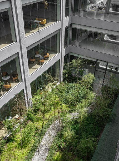 候診空間和中庭花園的融合,醫(yī)院內(nèi)庭花園和地下室下沉庭院的融合,屋頂花園與裙房的融合…… 30余畝的內(nèi)庭花園和沿江綠地花園打造,使整個(gè)建筑空間更加豐富有層次,與山石、水景等自然元素相搭配,通過(guò)對(duì)景、借景等園林造景手法,構(gòu)建無(wú)限貼近自然環(huán)境的景觀空間,與都江堰、青城山豐富的森林植被相呼應(yīng),增強(qiáng)自然氣息,突破傳統(tǒng)醫(yī)療空間設(shè)計(jì),激發(fā)使用者的正向情感,消除身心障礙,將溫暖與療愈進(jìn)行到底。